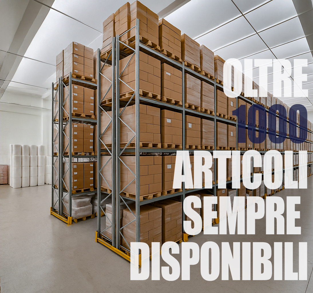 La nostra struttura dispone di 8.000 metri quadrati di magazzino, organizzati in modo da garantire stoccaggio efficiente, disponibilità costante e rapidità nelle spedizioni. Questo ci permette di assicurare rifornimenti puntuali, tempi certi e continuità operativa per tutte le aziende che lavorano con noi.